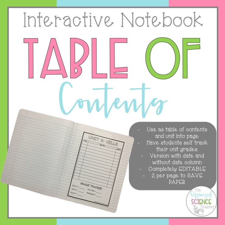 These table of contents are perfect for interactive notebooks and work great as intro pages for each unit. There is space to track quiz and test grades for the unit. There is also a space for you to place their notebook grade if you wish to! This is completely editable! You can have students write in each page as you do them OR you can type up the different pages before you print!