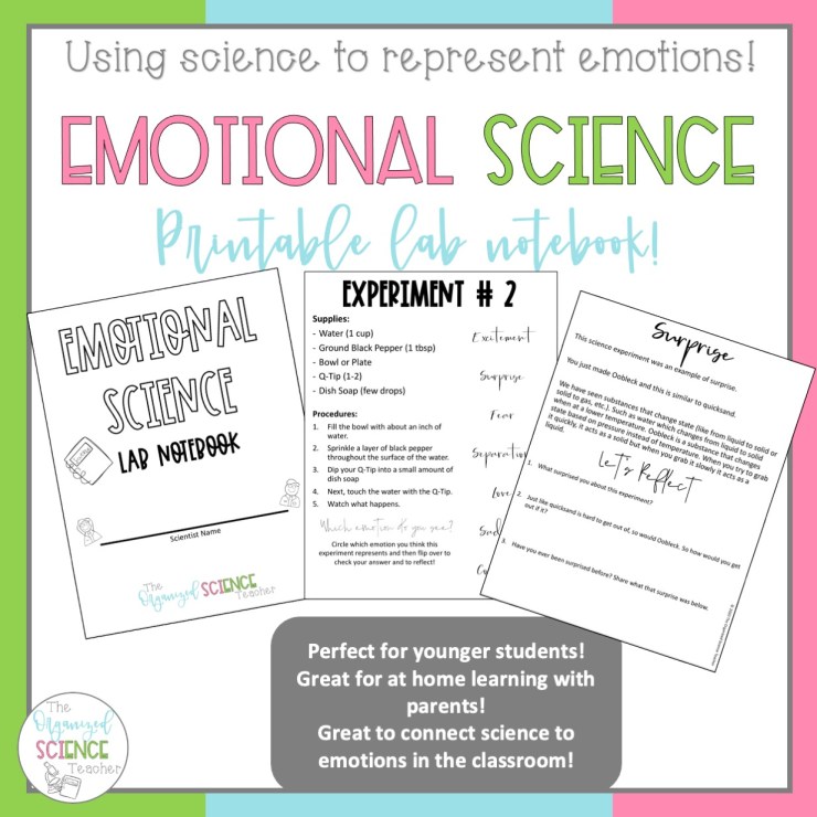 Using science to represent emotions! These science experiments allow students to connect and reflect on different emotions while learning some simple science ideas! Great for younger kids! Great for at home learning or to supplement school work!